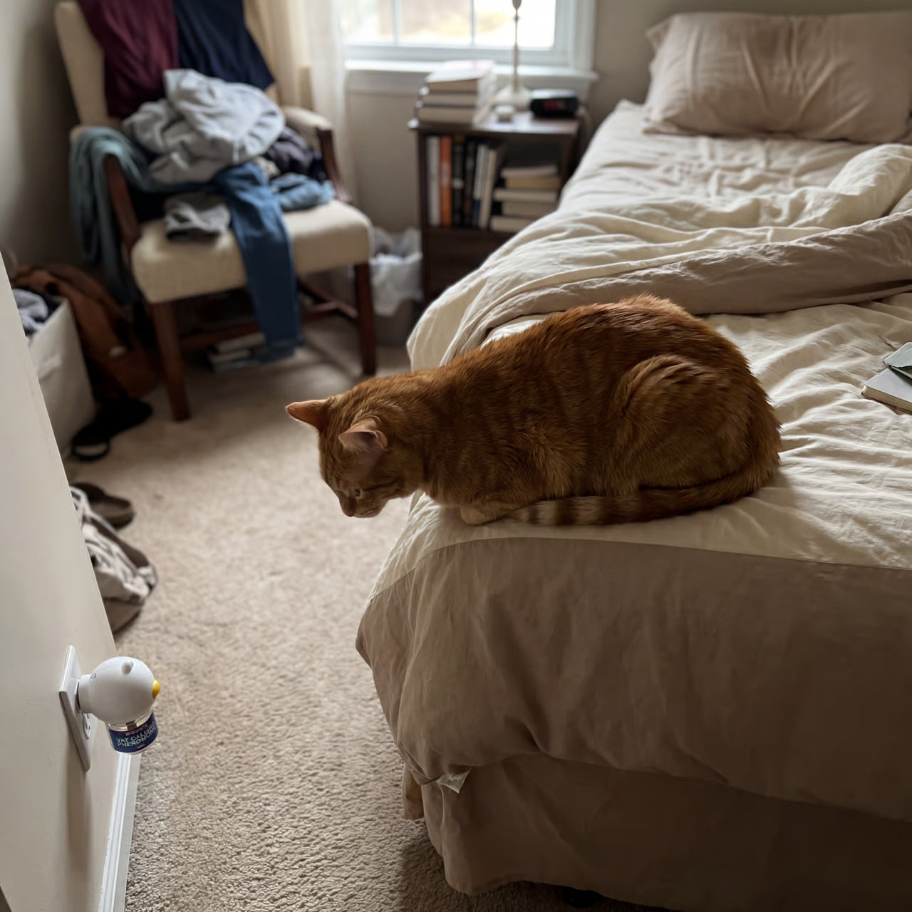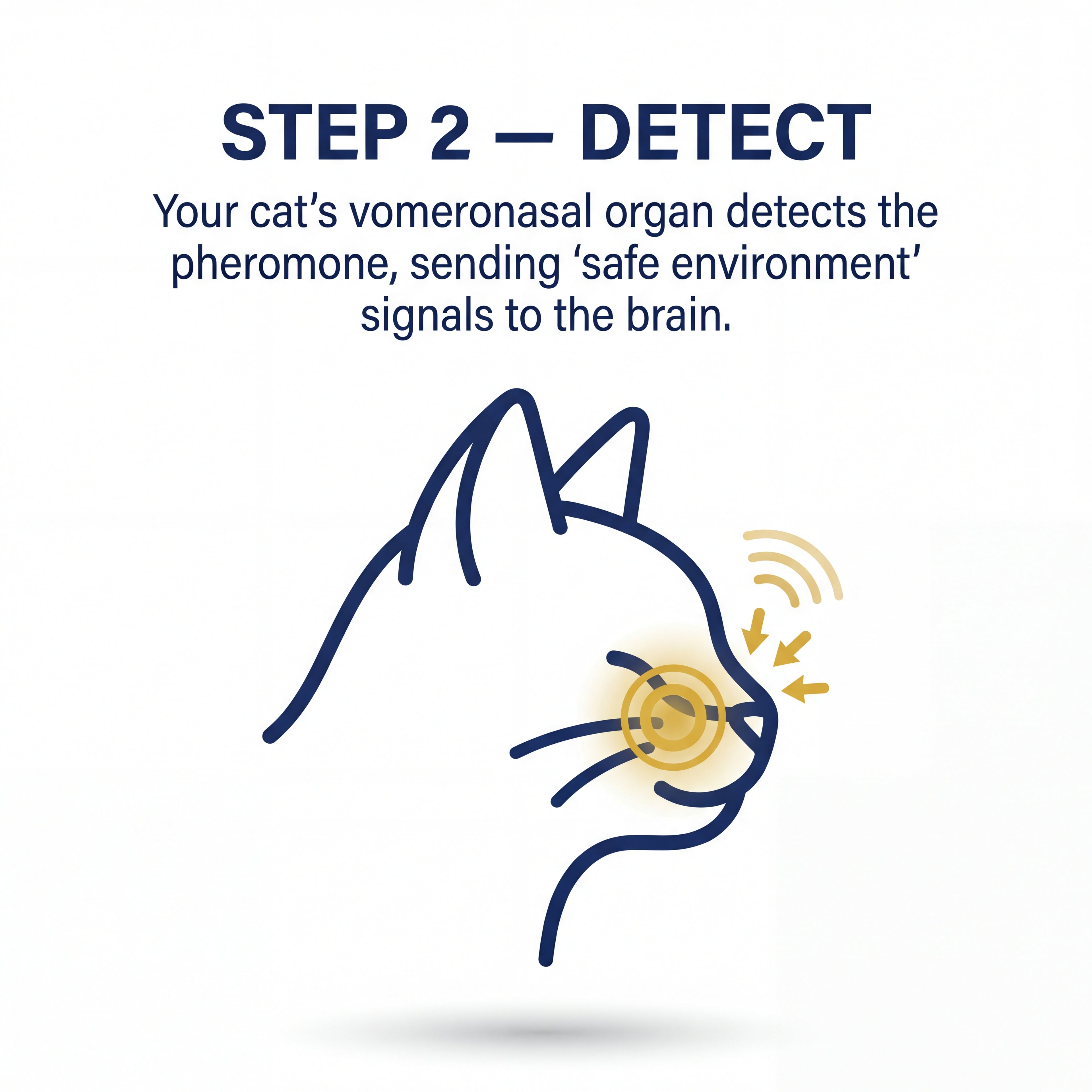 Plug into an outlet in the room where your cat spends most time or exhibits stress behaviors. Keep away from air vents, windows, and doors to prevent pheromone dilution. DO NOT use power strips or surge protectors - this reduces effectiveness. One diffuser covers up to 700 sq ft. For cats with behaviors in multiple areas (spraying in bedroom, scratching in living room), you'll need one diffuser per problem zone - our multi-pack bundles save up to 30% vs. buying separately.