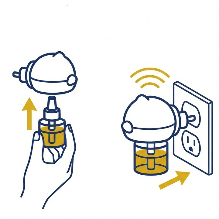 Insert refill vial into diffuser head and plug into any standard outlet. Device heats and disperses pheromones within minutes. Avoid placing near air vents or open windows.